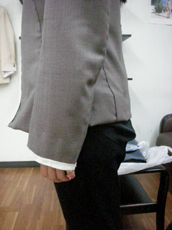胸ポケット無し、脇ポケットも無し、襟高4センチ 袖ボタンは大きなクルミ一個でスッキリ見せています ベンツはセンターベンツにして ベンツ付け根へ大きなクルミ一個 これが人気あるんですよ 素敵ですよね如何ですか?