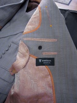袖3個ボタン イタリア系は4個が多いので これは拘りです | ドーメル専用裏地もお付けして出来上がりです ドーメル アマデウス シングルスーツ御仕立て上がり ¥99.000−税込み