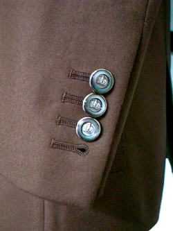 スタイルはクラシコとブリソフトになさいました 一着のほうをボタン穴糸を全て渋いブルーになさいました もう一着は袖ボタン穴糸一個 渋いブルーに 好いですね〜 でしょ
